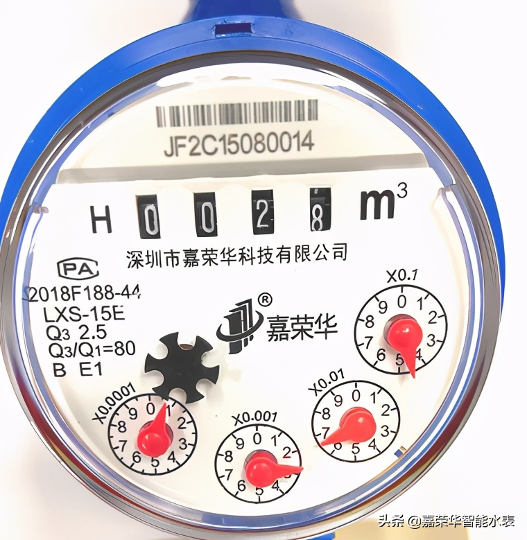 1.“紅色指針”的刻度表示小數(shù)點(diǎn)后面的計(jì)量讀數(shù)。表下分別是0.0001/0.001/0.01/0.1四個(gè)儀表。當(dāng)水表在“紅色指針”中從左往右分別顯示7564時(shí),即表示水表的讀數(shù)是0.4657噸。